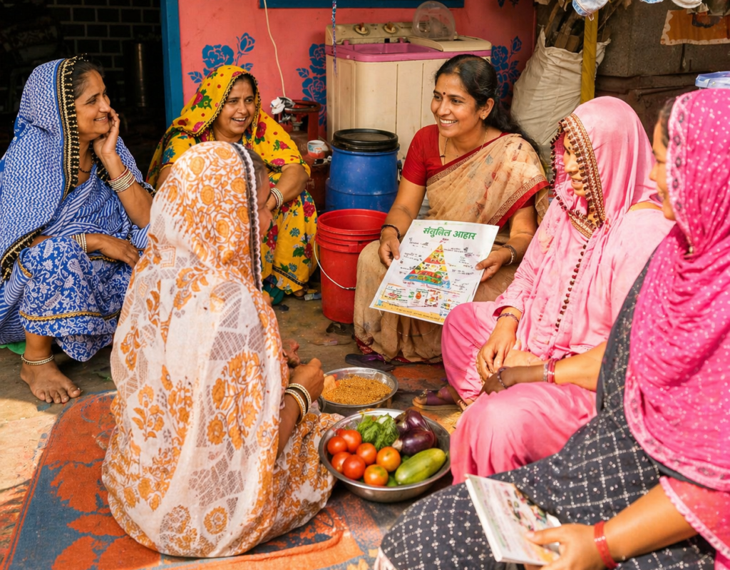 For adolescent girls, awareness sessions highlight the importance of a balanced diet during growth years, addressing issues like anaemia, undernutrition, and food-related misconceptions.